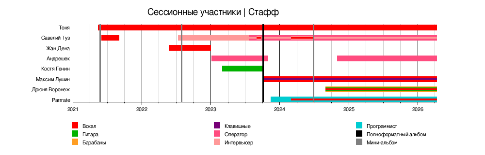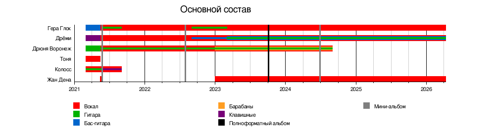 bar:Ruina from:14/05/2021 till:end color:Vocals | bar:Ruina from:14/05/2021 till:end color:Vocals | ||
