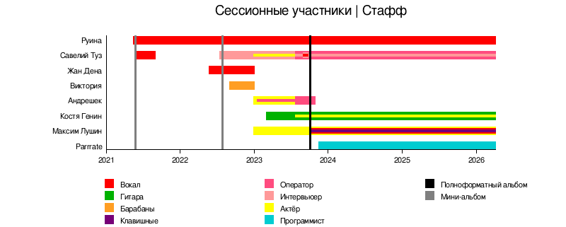 bar:Kostya from:02/03/2023 till:end color:Guitar | bar:Kostya from:02/03/2023 till:end color:Guitar | ||