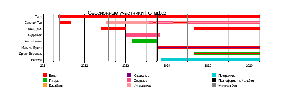 bar:Ruina from:14/05/2021 till:end color:Vocals | bar:Ruina from:14/05/2021 till:end color:Vocals | ||