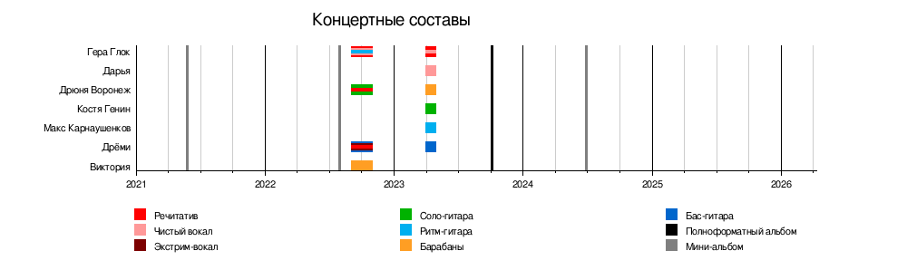 Неотъемлемыми участниками группы являются Гера Глок, Дрёми, и Дрюня Воронеж. Трио стоит у истоков коллектива, пишет и продюсирует всю музыку группы.